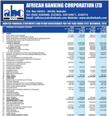 news April 3, 2019 admin AUDITED FINANCIAL STATEMENTS AND OTHER DISCLOSURES AS AT 31ST DECEMBER 2018 Previous Post Job Shadow Day in celebration of Global Money Week – 15th March 2019 Next Post ABC Bank celebrates phenomenal women